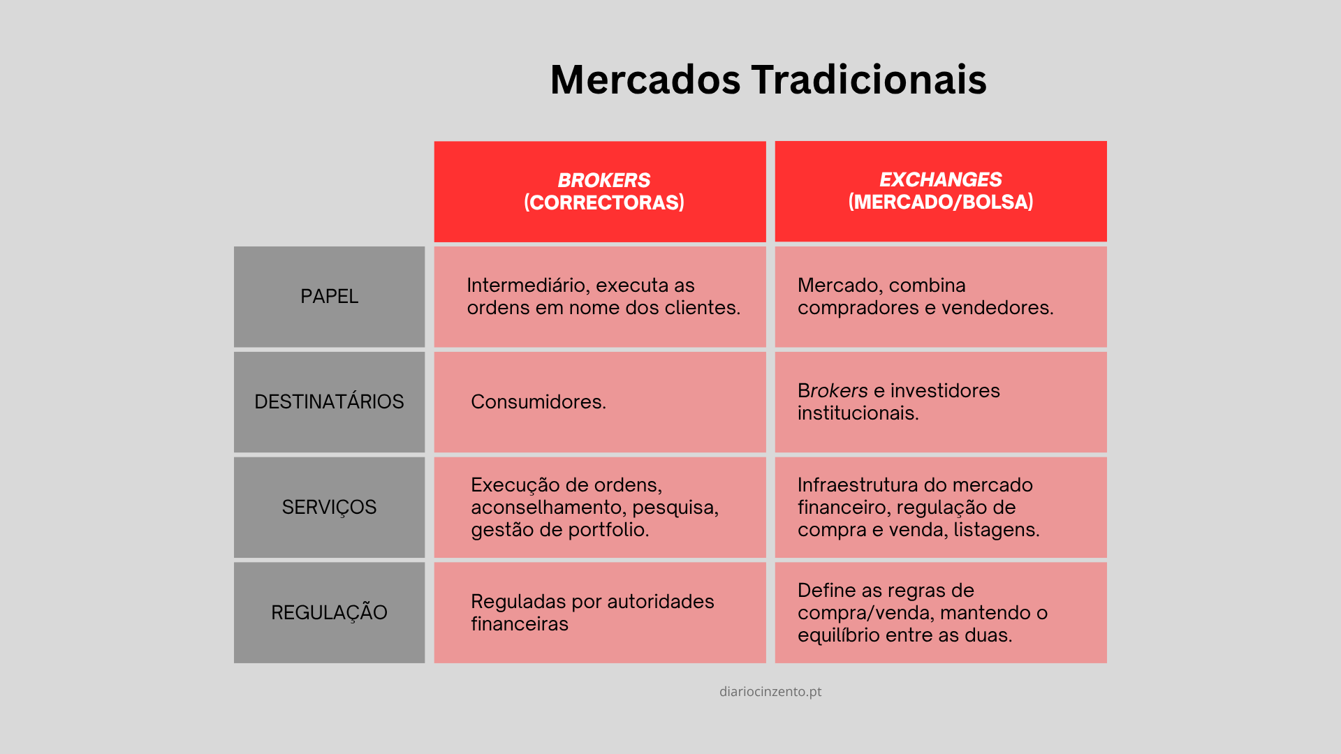 Este é um resumo simples mas importante, não só para se ter um entendimento de como o mercado é estruturado, mas também, para ajudar a perceber um pouco melhor as diferenças com o mercado das criptomoedas.