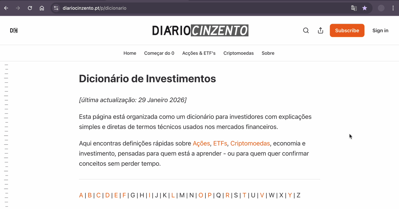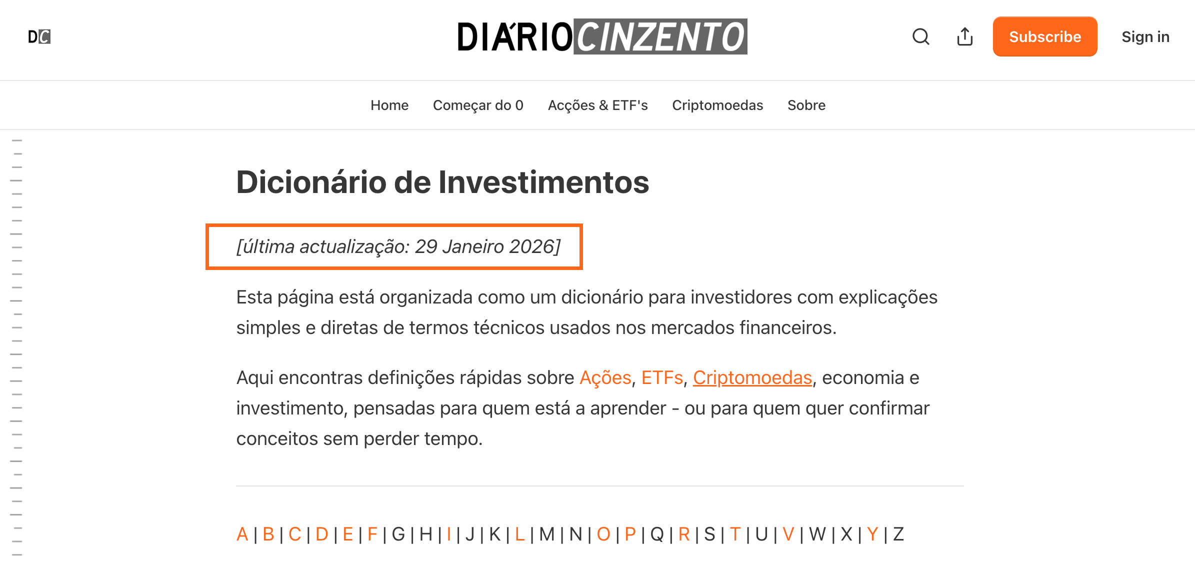 Acrescentei a este Diário uma página com um “Dicionário para investidores”.