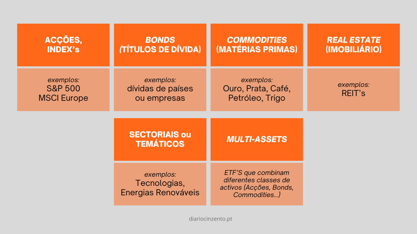 Existem centenas de ETF's por aí mas, para simplificar, vamos agrupá-los: